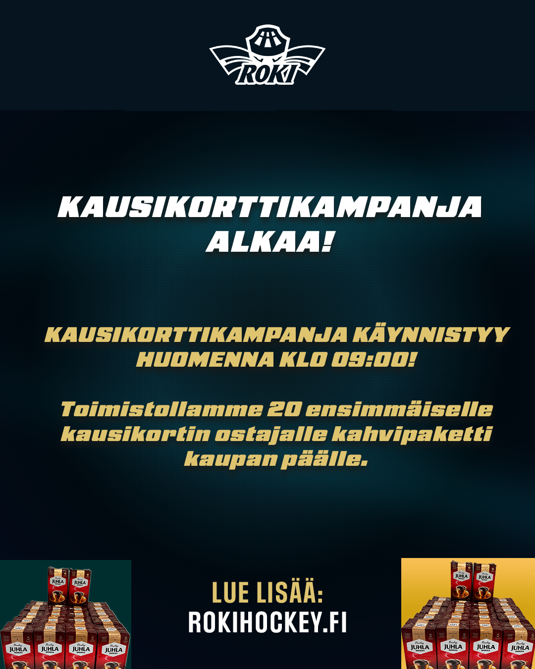 RoKin kausikortit kaikkien aikojen Mestis-kaudelle 2026-27 ovat nyt myynnissä lippu.fi verkkosivuilla ja RoKin toimistolla.