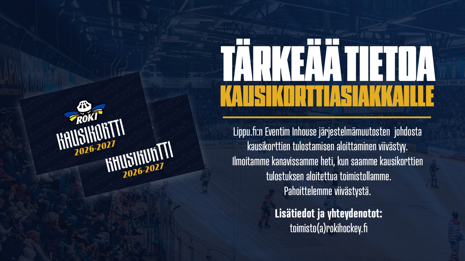 Kausikorttien noudon aloitusajankohta siirtyy ensi viikolle (vko17). Ilmoitamme kanavissamme heti, kun kausikortit ovat noudettavissa.