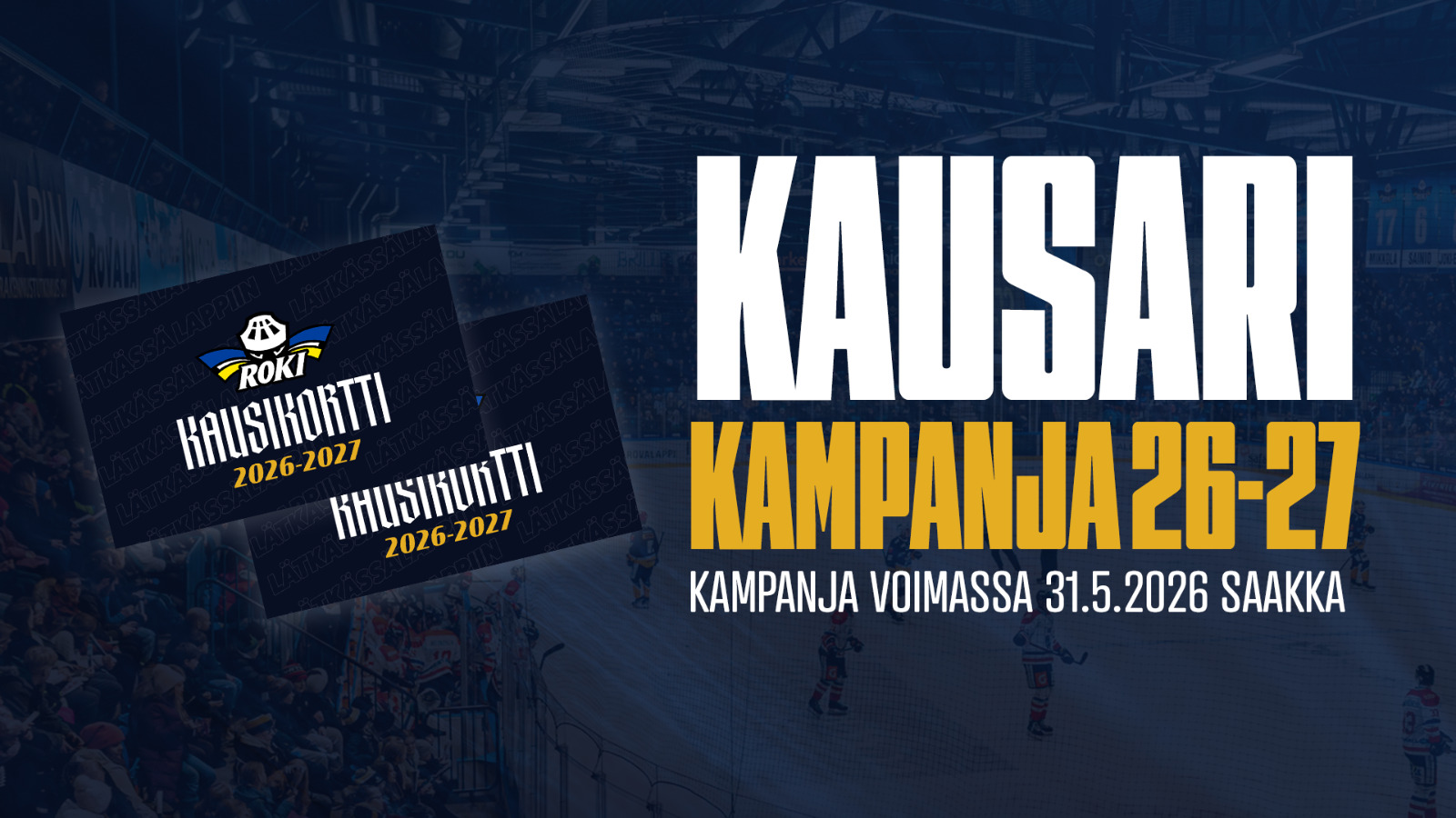 RoKin kausikortit kaikkien aikojen Mestis-kaudelle 2026-27 ovat nyt myynnissä lippu.fi verkkosivuilla ja RoKin toimistolla.